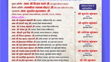 कवर्धा,लोहारा: छत्तीसगढ़ कुम्भकार समाज जिला कबीरधाम द्वारा वार्षिक सामाजिक अधिवेशन 2026 का आयोजन 08 मार्च 2026, रविवार को दोपहर 12…
