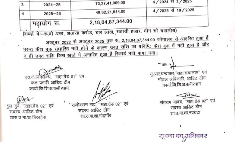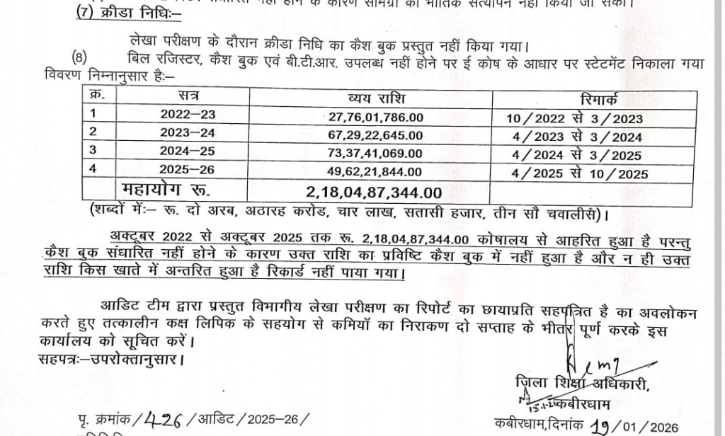 कवर्धा शिक्षा विभाग में 218 करोड़ 4 लाख रुपये का हिसाब गायब, ऑडिट में खुली गंभीर वित्तीय अनियमितता