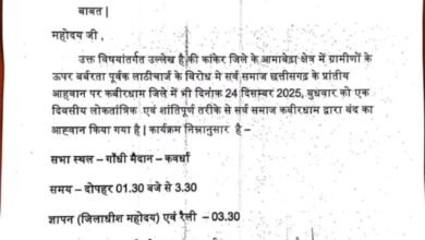 कांकेर में लाठीचार्ज के विरोध में 24 दिसंबर को कबीरधाम जिला बंद का ऐलान